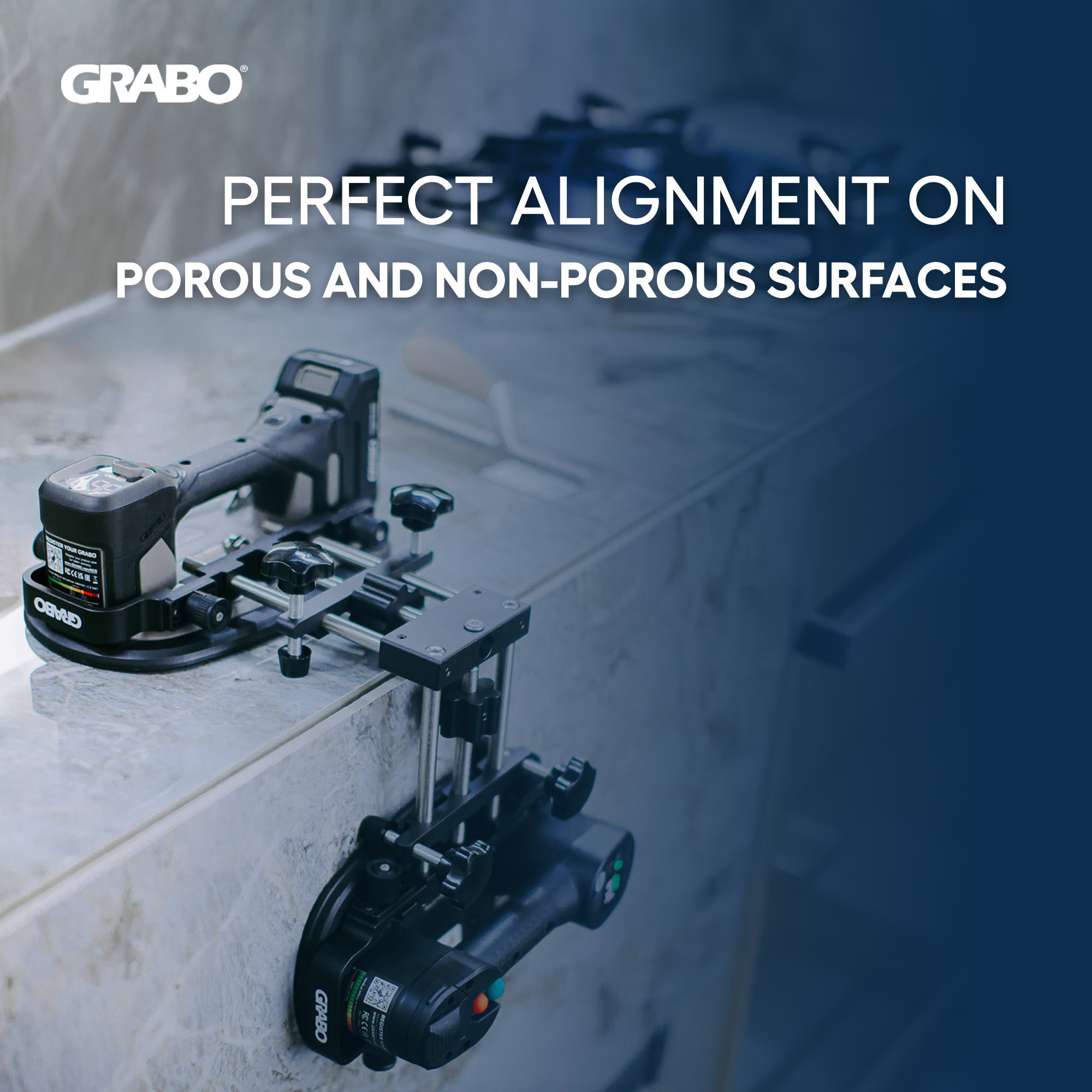 By combining GRABO’s powerful suction hold with a stable corner alignment system, the GRABO 90° Seam Setter V2delivers greater accuracy, faster setup, and more professional results when installing stone, tile, countertops, and large panels that require perfect right-angle seams.