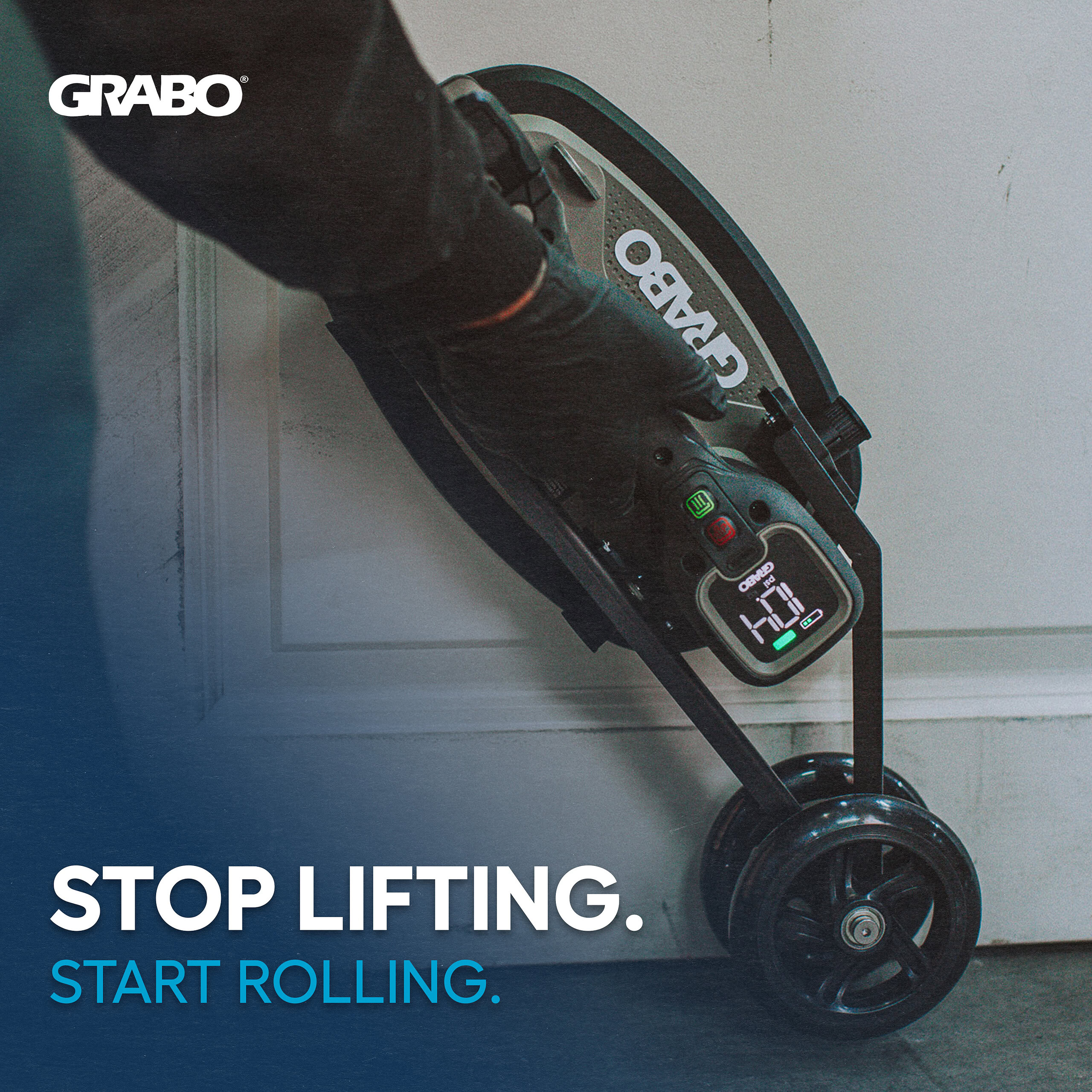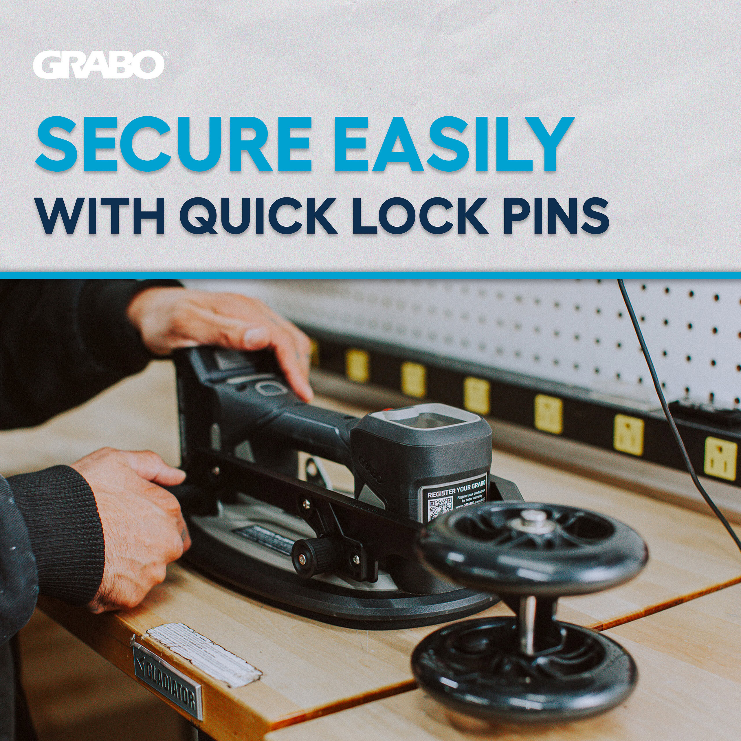 The innovative GRABO ROLLER is designed to remove the burden of manually lifting heavy materials. The GRABO Roller securely attaches to your GRABO tool with three quick-lock pins onto the anchor points. On the opposite end, two large, rugged rubberized wheels allow you to effortlessly roll bulky materials such as stone slabs, glass panels, countertops, and oversized tiles from location to location. Increase productivity, reduce physical strain, and enhance workplace safety. Transporting large materials has never been easier. With the GRABO Roller, stop lifting and start rolling.