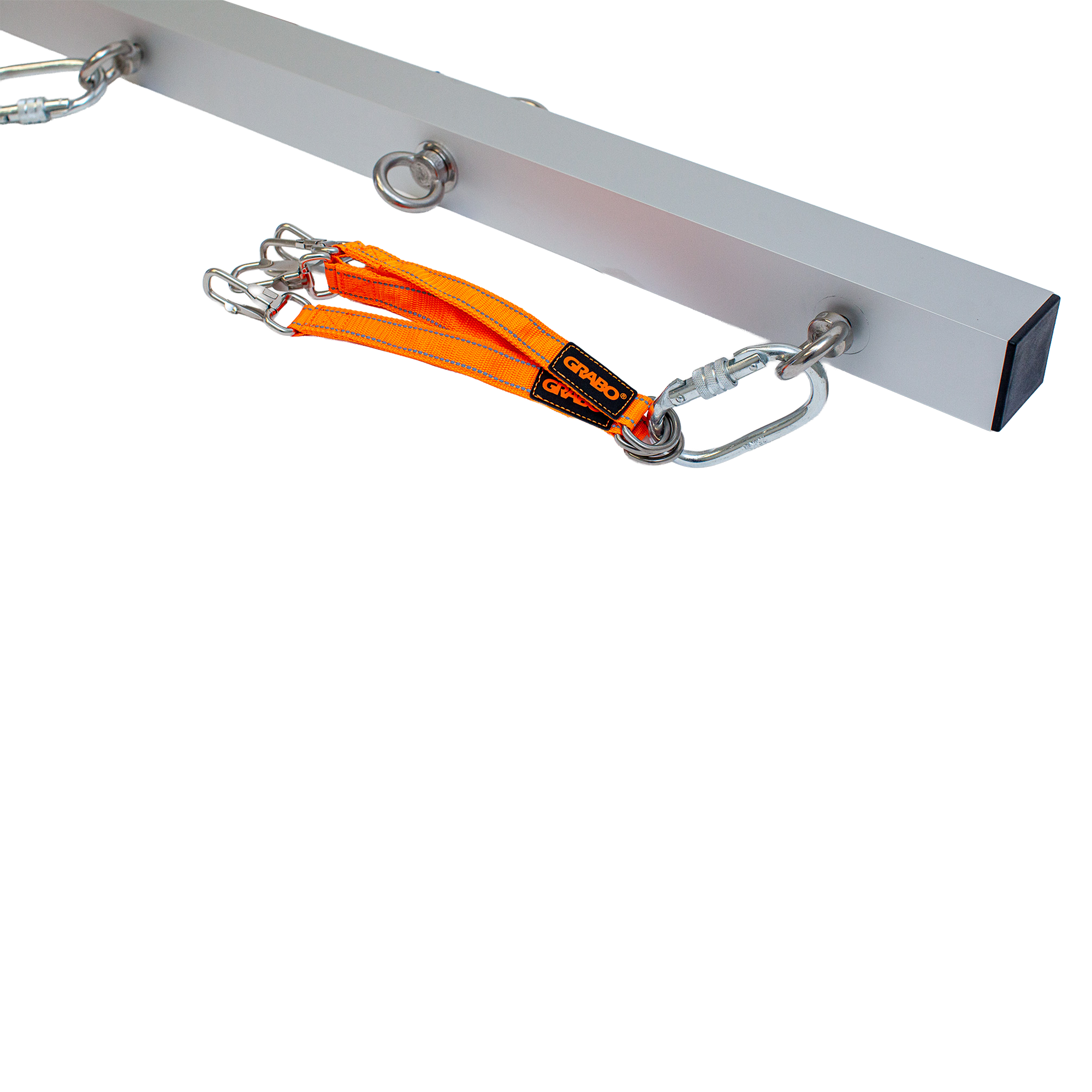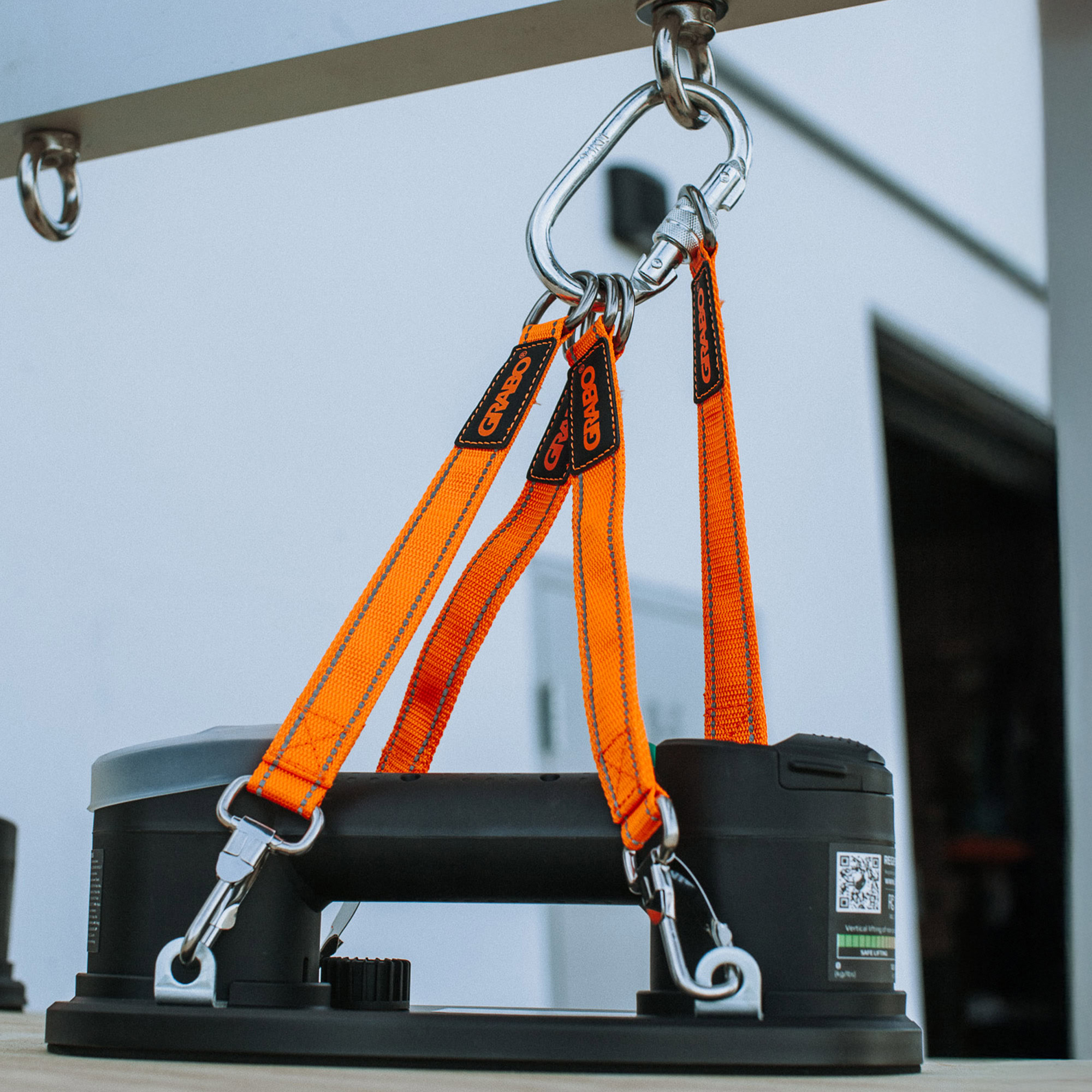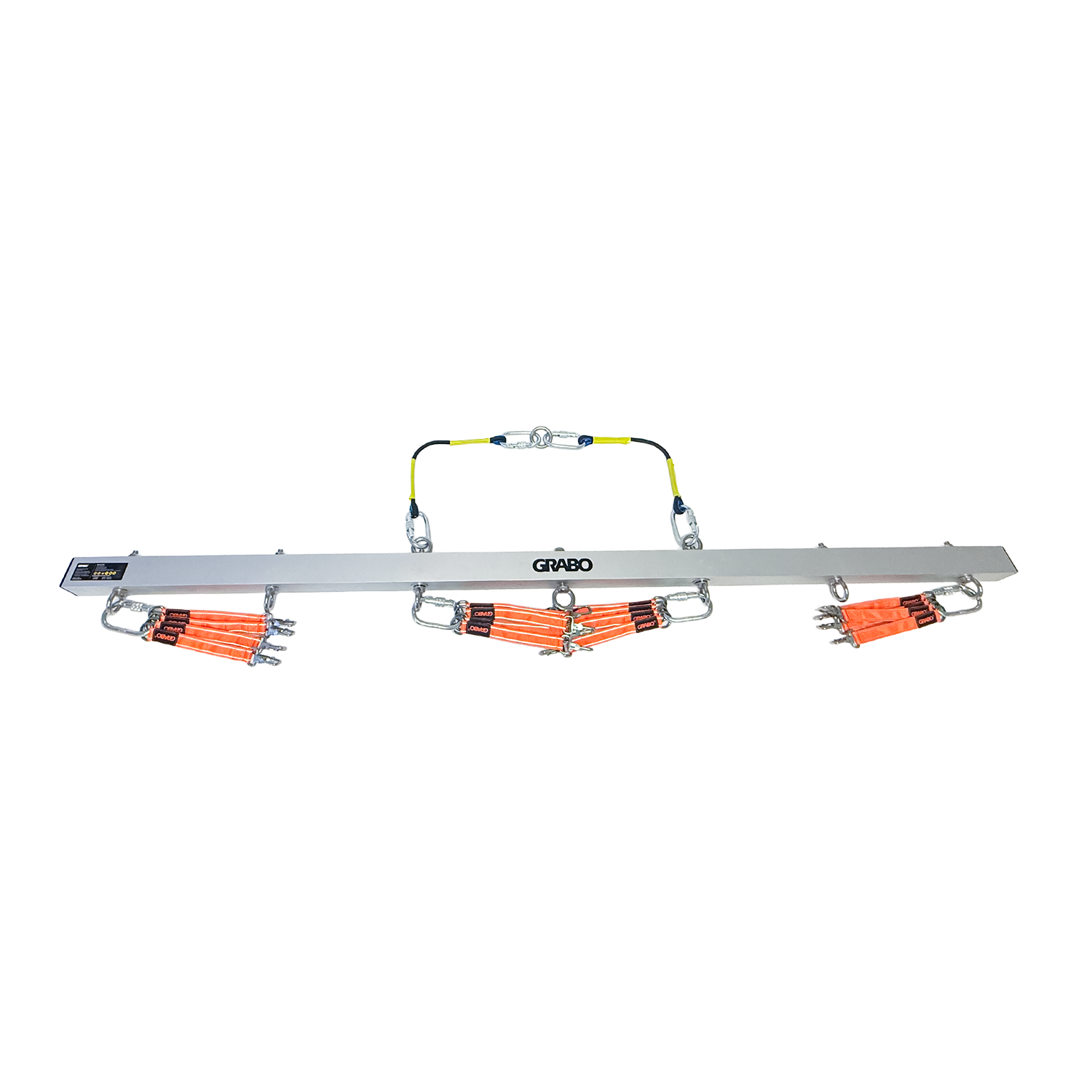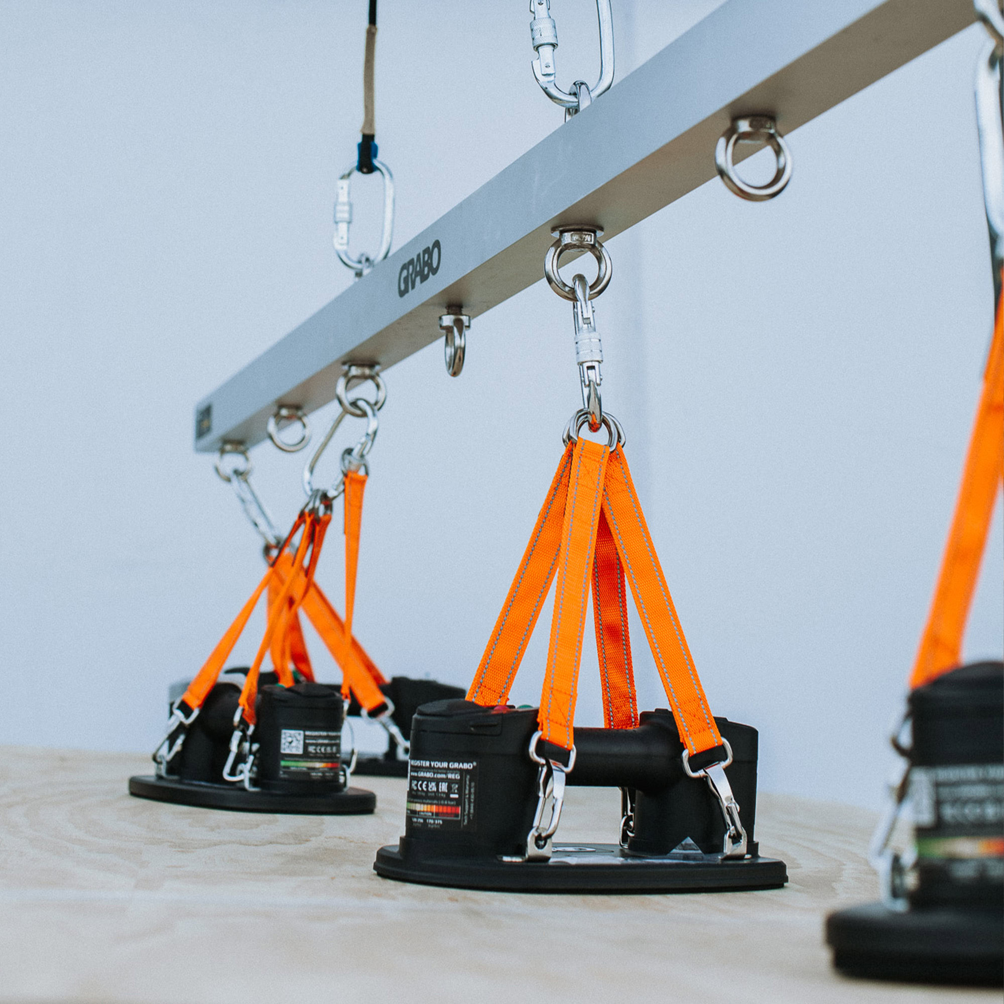 The GRABO U-Hoist is a strong, rigid metal bar that users can attach up to 4 GRABO tools for ultimate heavy lifting! When one GRABO simply isn’t enough, this bar will maintain the structure of your heavy material with its evenly distributed hooks for up to four GRABO tools. This will keep your large and heavy slabs or materials flat with up to four GRABO tools evenly placed throughout the material so your material will never warp, crack, or bend when you lift the heavy materials with a crane or forklift.