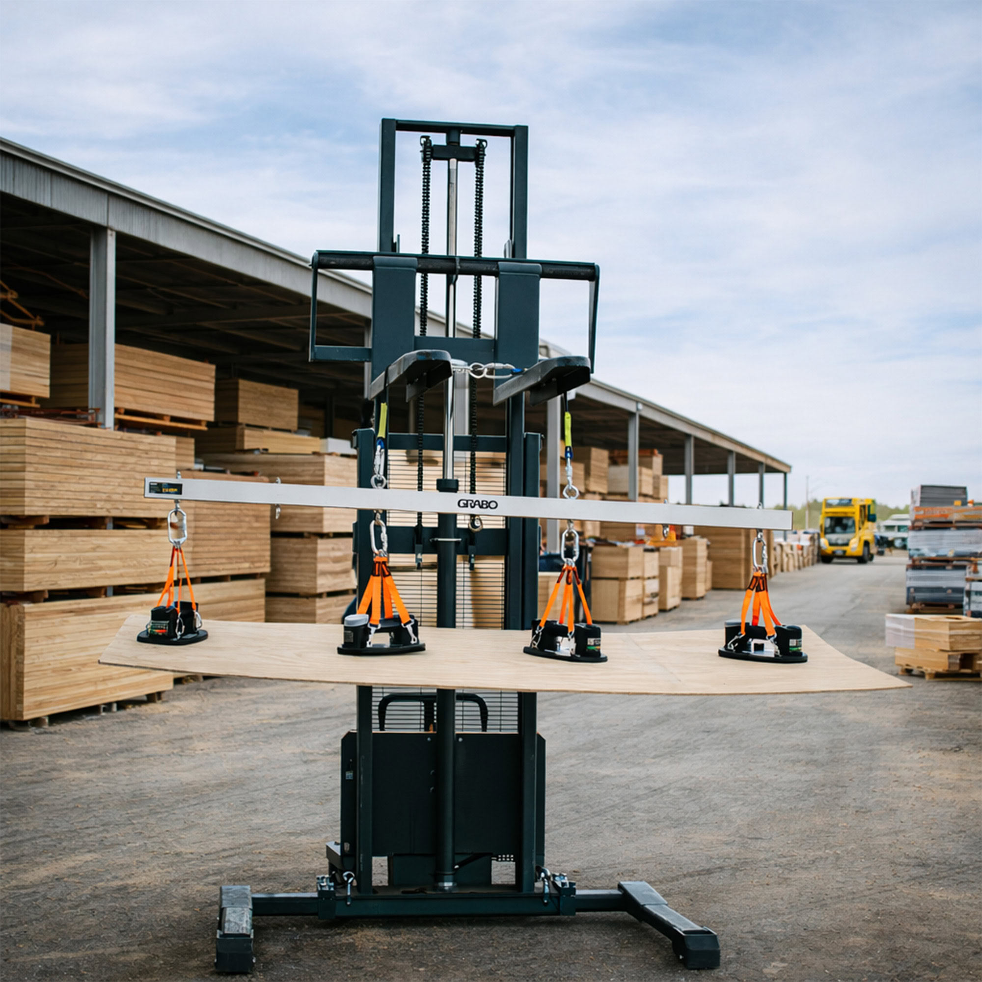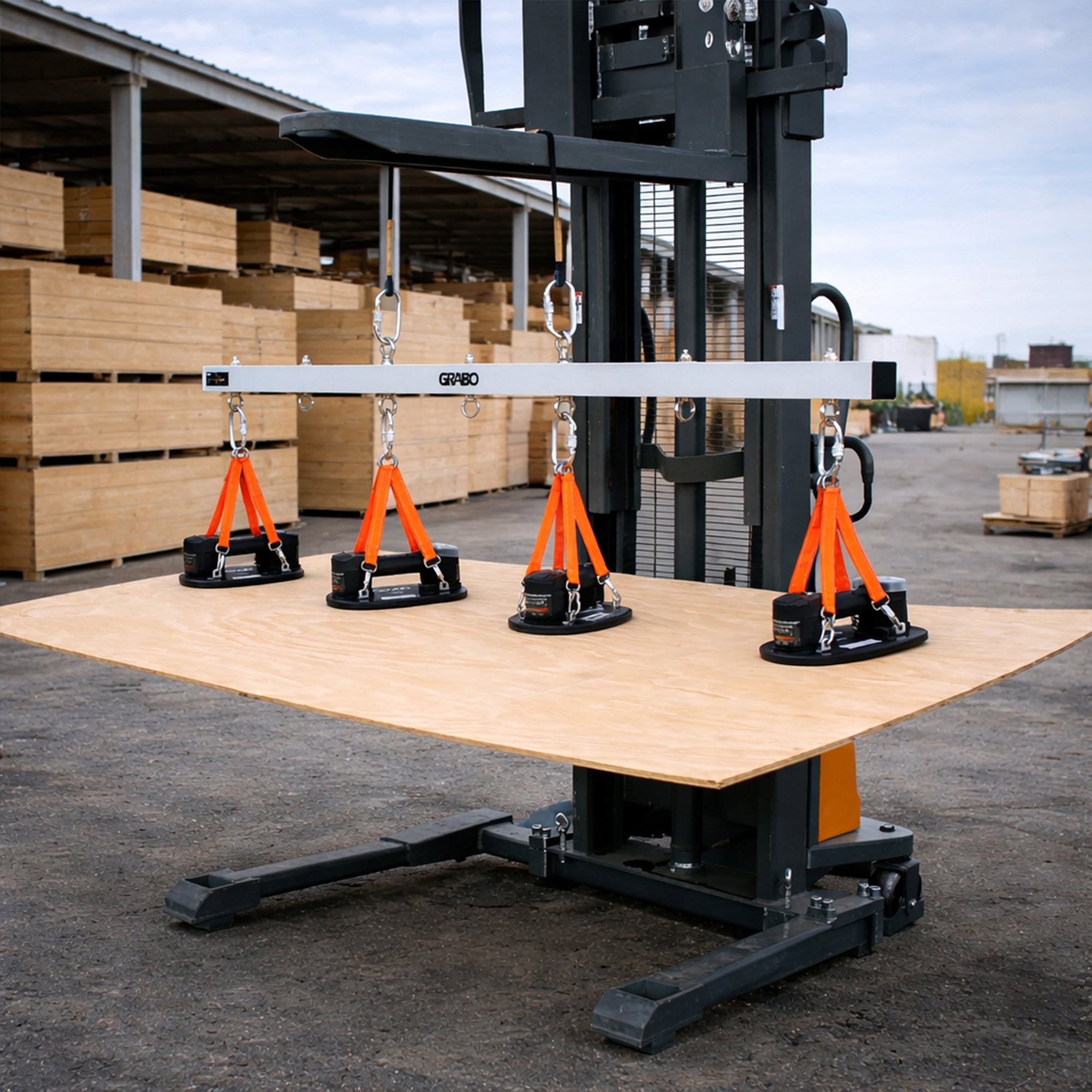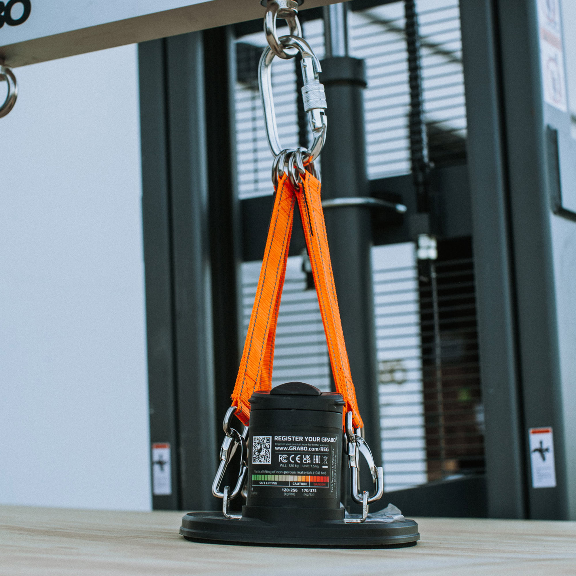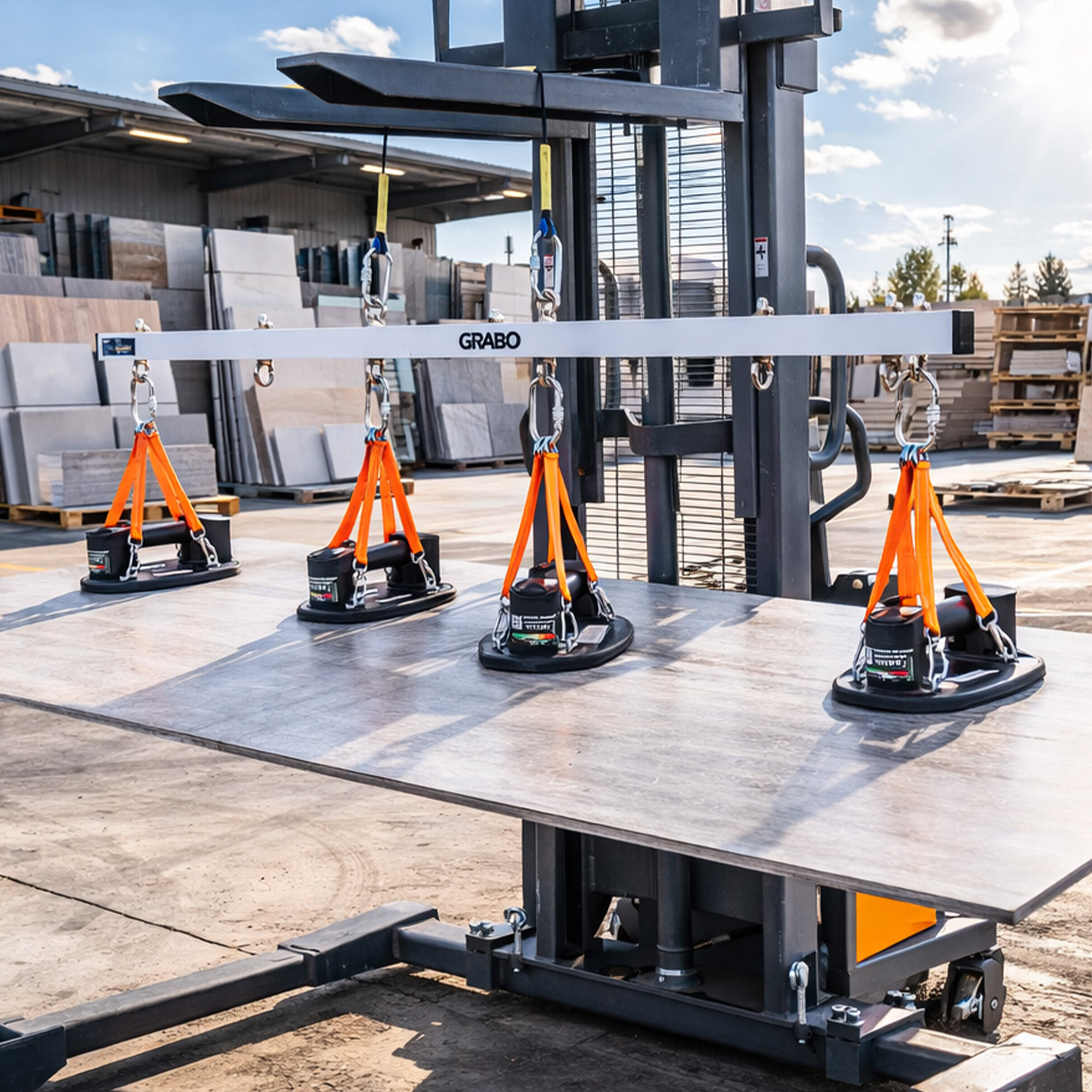 The GRABO U-Hoist is a strong, rigid metal bar that users can attach up to 4 GRABO tools for ultimate heavy lifting! When one GRABO simply isn’t enough, this bar will maintain the structure of your heavy material with its evenly distributed hooks for up to four GRABO tools. This will keep your large and heavy slabs or materials flat with up to four GRABO tools evenly placed throughout the material so your material will never warp, crack, or bend when you lift the heavy materials with a crane or forklift.