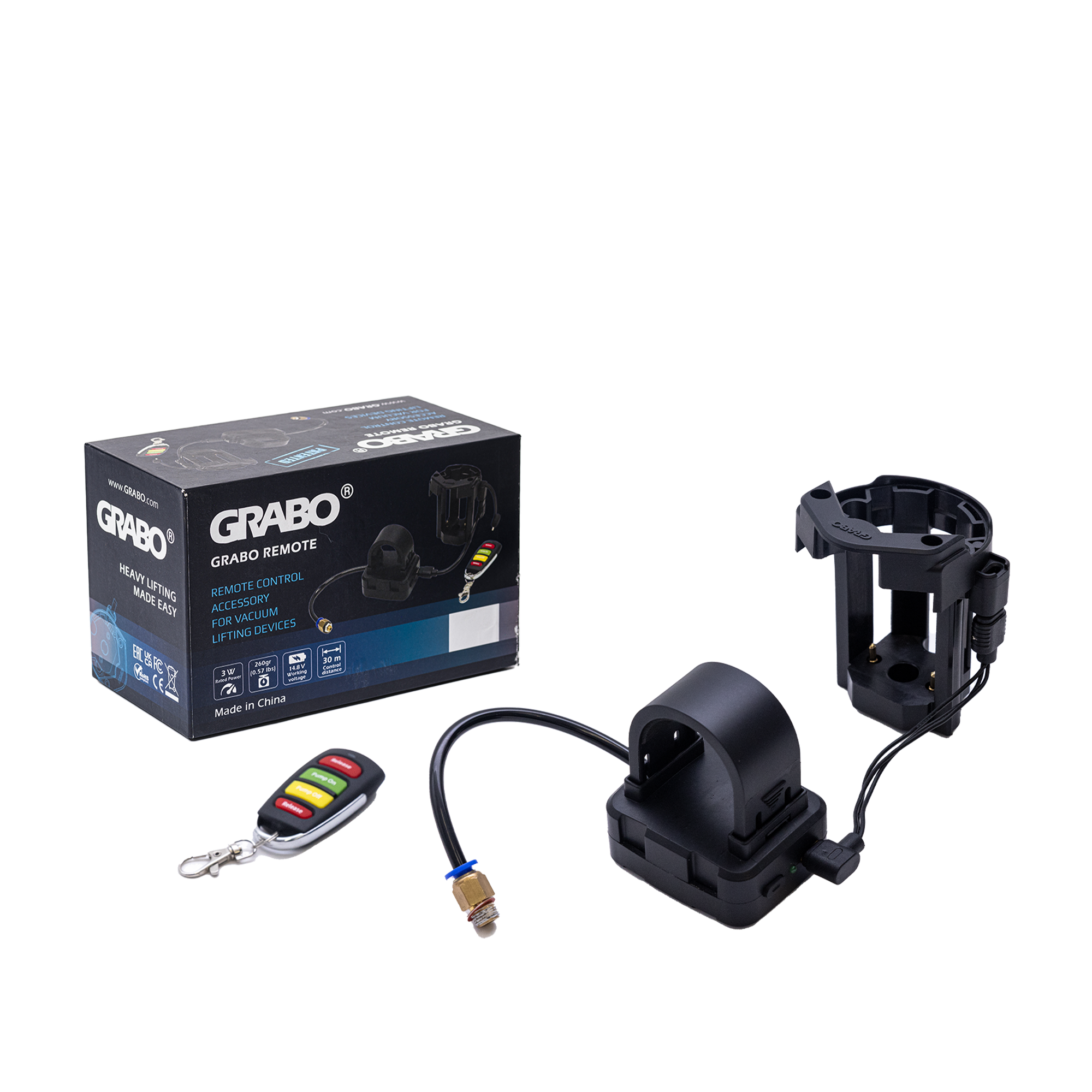 Wirelessly control your GRABO PRO LIFTER 20 or NEMO GRABO with the GRABO REMOTE accessory. The GRABO REMOTE is a small accessory that attaches to your GRABO tool that allows users to control the vacuum pump ON/OFF function as well as release pressure through a RF signal via a small fob style remote. Users can operate multiple tools simultaneously with the remote control accessory from up to 30 meters in distance at 433.92 MNz.